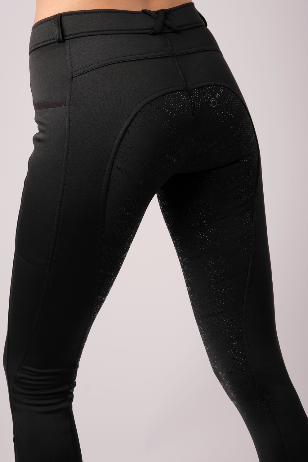 De rijbroek is gemaakt van een zachte en flexibele softshell stof die waterafstotend, winddicht en zweettransporterend is, waardoor ze perfect zijn voor de koude wintermaanden.