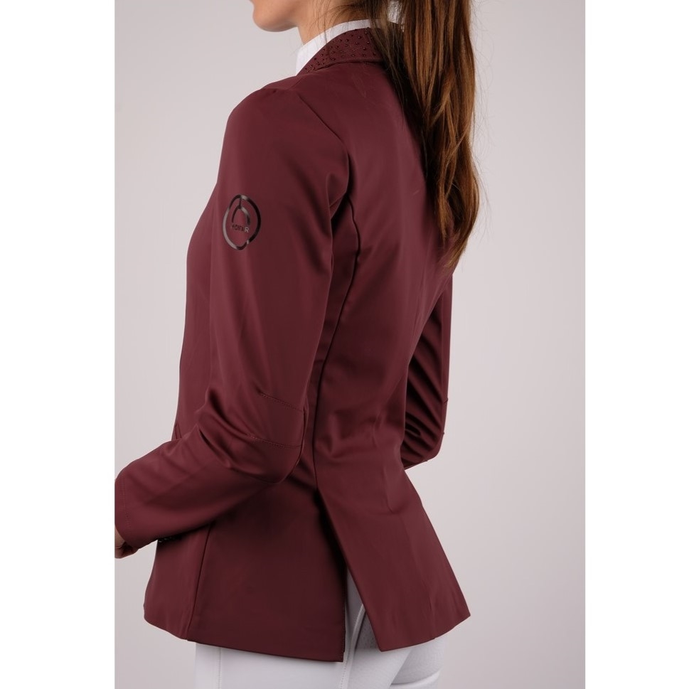 Montar wedstrijdjas Bonnie is een stijlvolle en moderne wedstrijdjas die een exclusieve uitstraling combineert met hoge functionaliteit. De kleine ton-sur-ton steentjes op de kraag geven een subtiele en elegante look, waardoor de jas ideaal is voor zowel wedstrijden als officiële gelegenheden.