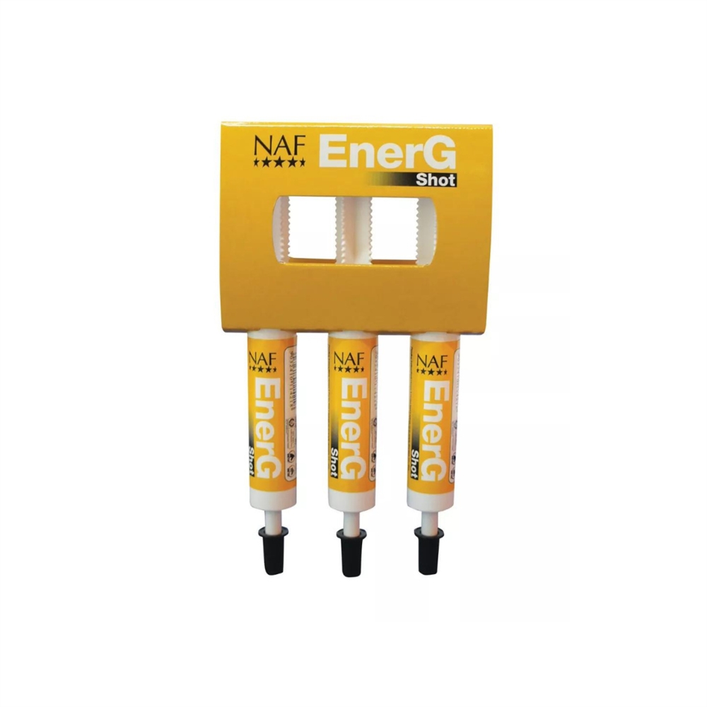 NAF EnerG Shot is een geconcentreerde, voedzame mix van essentiële aminozuren en biologisch beschikbaar ijzer, ontworpen om de energiehuishouding van werkende paarden te ondersteunen. Het product is gemakkelijk toe te dienen via een spuit, wat het ideaal maakt voor wedstrijden, training en andere situaties waarin het paard een snelle energieboost nodig heeft.