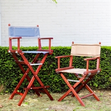 De instructeursstoel is gemaakt van lichtgewicht hout en gebeitst in een mooie mahoniekleur, wat een klassieke en elegante uitstraling geeft. Het hoge model is uitgerust met een smalle voetensteun, die extra comfort en ondersteuning biedt tijdens gebruik.