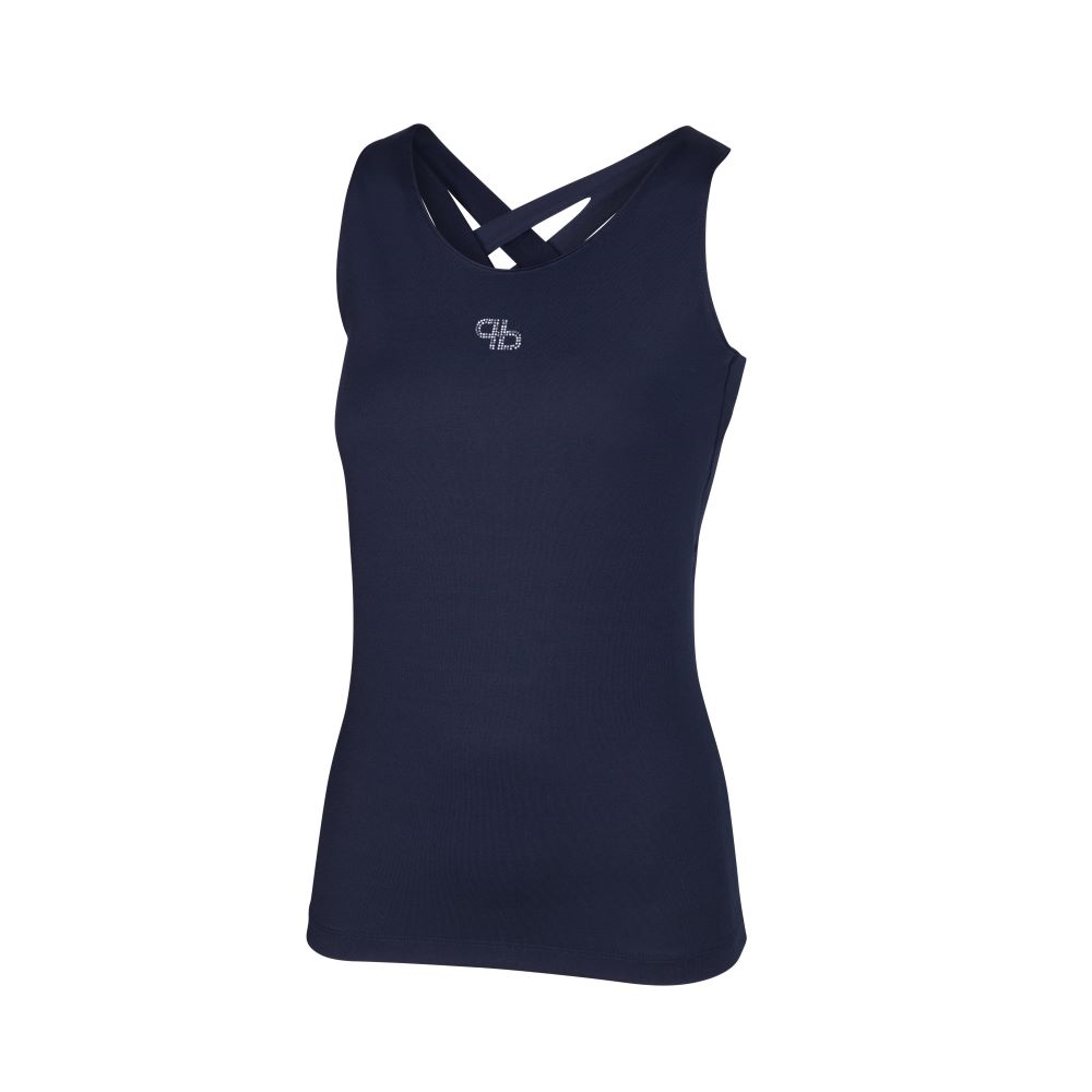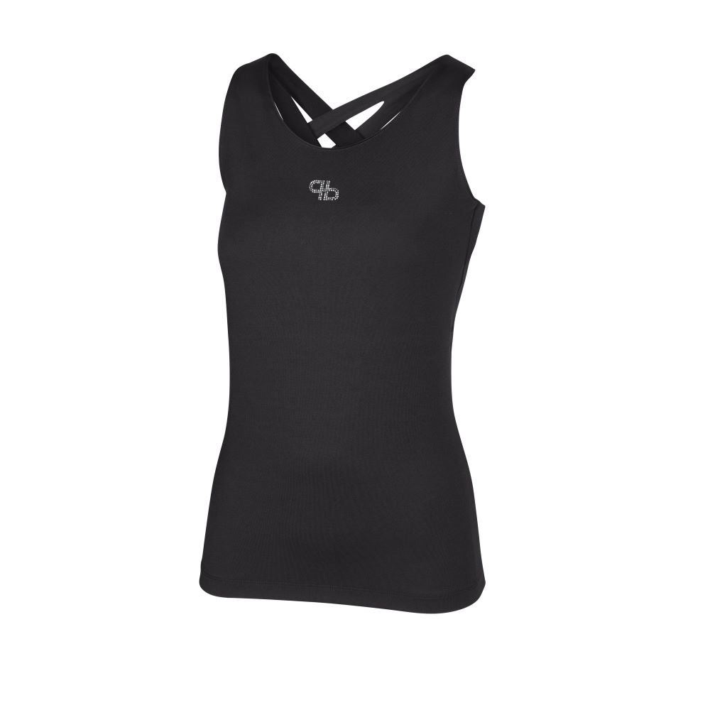 Slimme functionele top met gekruiste bandjes op de rug.
