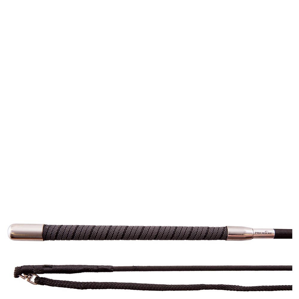 Praktische tweedelige longeerzweep met schroefdraad, waardoor deze eenvoudig uit elkaar te halen en te vervoeren is. De stok van de zweep is gemaakt van glasvezel met nylondraad, wat zowel flexibiliteit als duurzaamheid biedt.