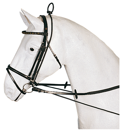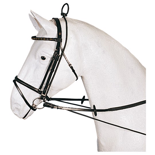 De elastische chambon gaat door het bit en wordt vastgemaakt aan het zadel of de singel. Helpt om hoofd en hals in de juiste positie te houden. Verkrijgbaar in Zwart - Bruin