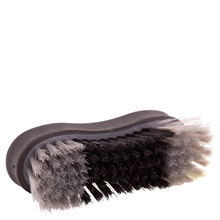 Zachte hoofd borstel met synthetische haren, die voorzichtig stof en vuil van de vacht van het paard verwijdert. De borstel heeft een praktische greep en een antislip rubberen rand aan de achterkant, waardoor het gemakkelijk vast te houden is tijdens gebruik.