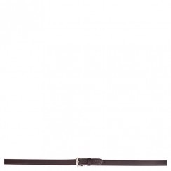 De teugel is uitgerust met rubber, wat helpt bij correcte handplaatsing, evenals lederen uiteinden met gespen van roestvrij staal, die een veilige en betrouwbare bevestiging aan het hoofdstel bieden. De teugel heeft dezelfde breedte in zowel grip als lederen uiteinden en is geschikt voor zowel pony als paard.