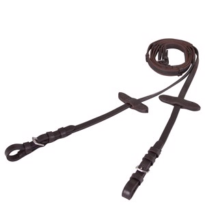 De teugel heeft zowel hand- als teugelstops, die betere controle bieden en de ruiter helpen een stabiele hand te behouden. De uiteinden zijn afgewerkt met lederen details, die een klassiek en elegant uiterlijk geven, terwijl de roestvrijstalen gespen zorgen voor hoge duurzaamheid en weerstand tegen roest.