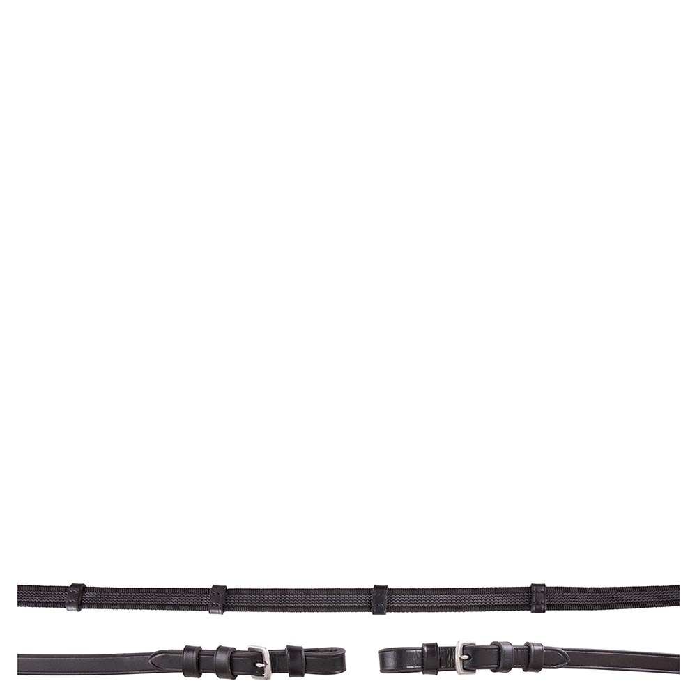 De teugel heeft zowel hand- als teugelstops, die betere controle bieden en de ruiter helpen een stabiele hand te behouden. De uiteinden zijn afgewerkt met lederen details, die een klassiek en elegant uiterlijk geven, terwijl de roestvrijstalen gespen zorgen voor hoge duurzaamheid en weerstand tegen roest.