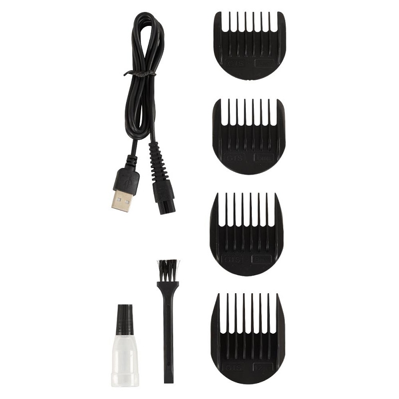 De tondeuse heeft een handige schuifknop die kan worden gedraaid om de scheerlengte aan te passen (0,5 tot 2 mm). Daarnaast wordt de trimmer geleverd met vier opzetkammen, die kunnen worden gebruikt om de scheerlengte te vergroten tot respectievelijk 3, 6, 9 en 12 mm.