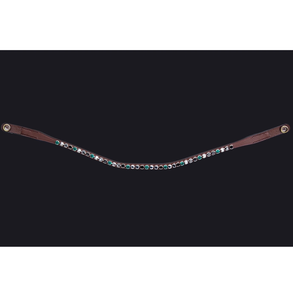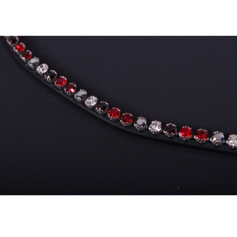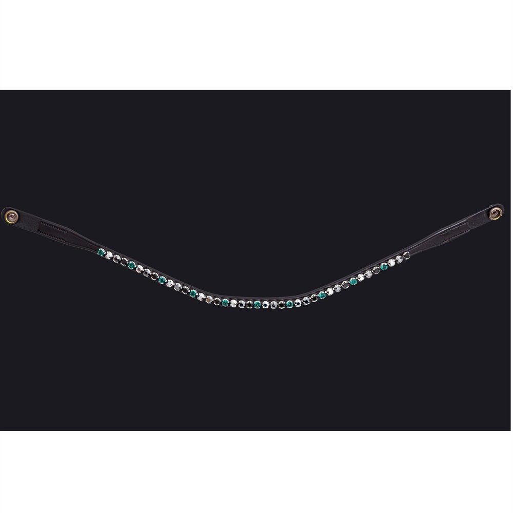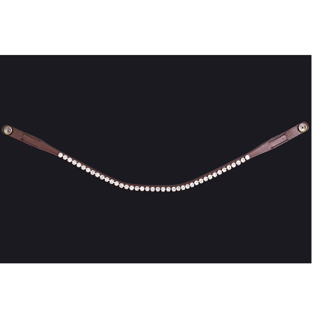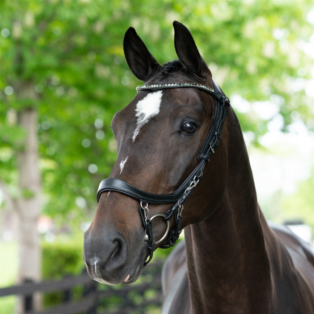 PRESTEQ ShineBright frontriem is speciaal ontworpen voor PRESTEQ-hoofdstellen en maakt het eenvoudig om frontriemen te verwisselen dankzij het slimme drukknoop systeem. De frontriem is elegant gebogen en versierd met glinsterende Swarovski-kristallen, die een stijlvolle en opvallende uitstraling geven in de wedstrijdring.