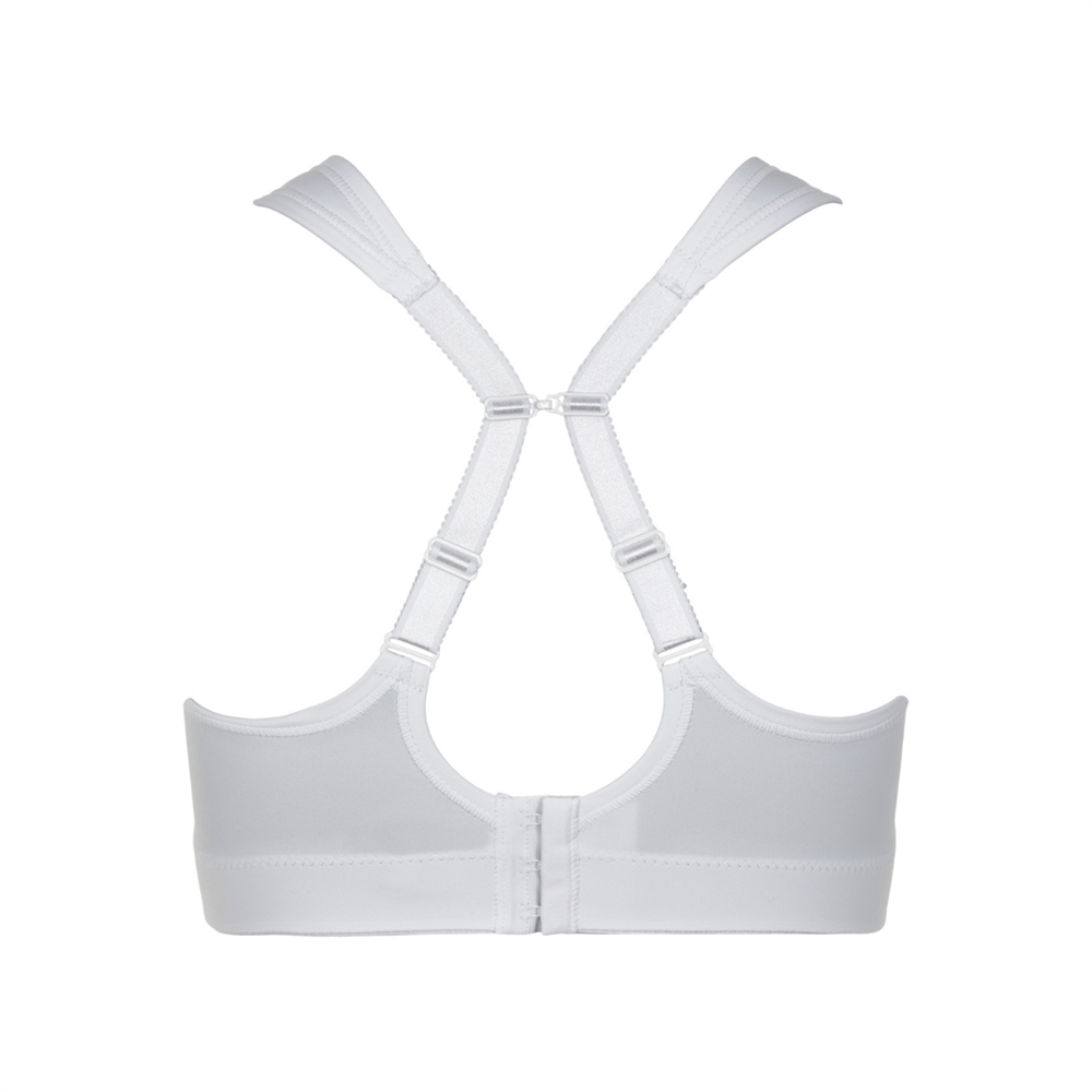De bh heeft gewatteerde, verstelbare bandjes die gekruist kunnen worden. Hij heeft voorgevormde cups, wat zorgt voor een goede pasvorm. Tussen de borsten is er een meshpaneel voor goede ventilatie. De bh heeft een gewone bh-sluiting.