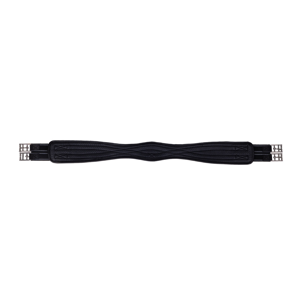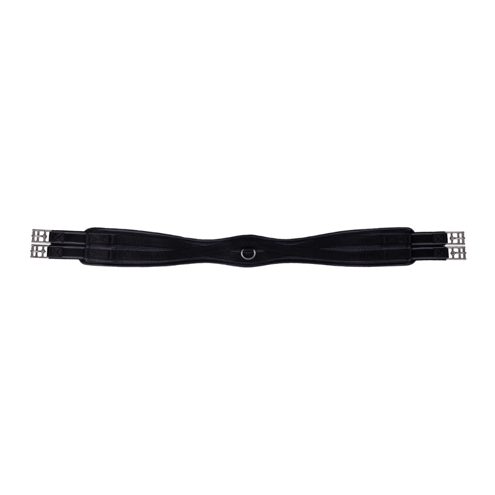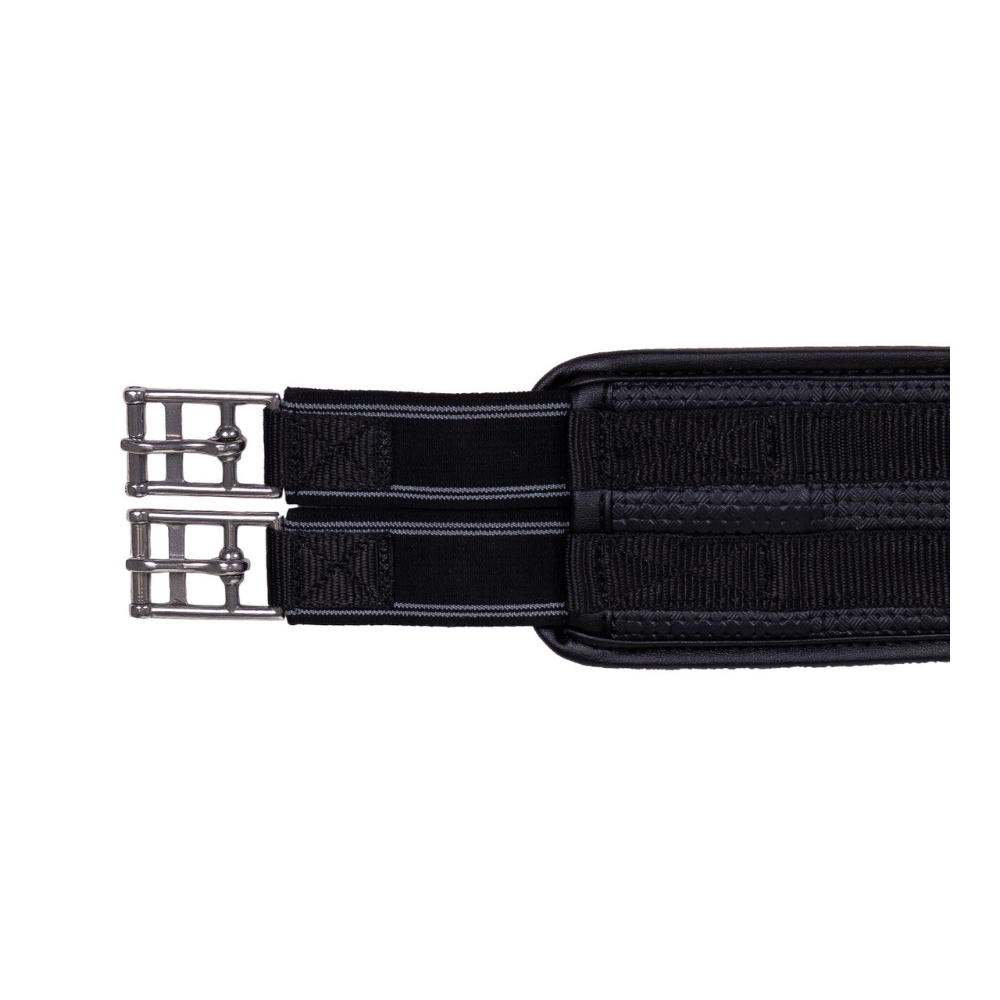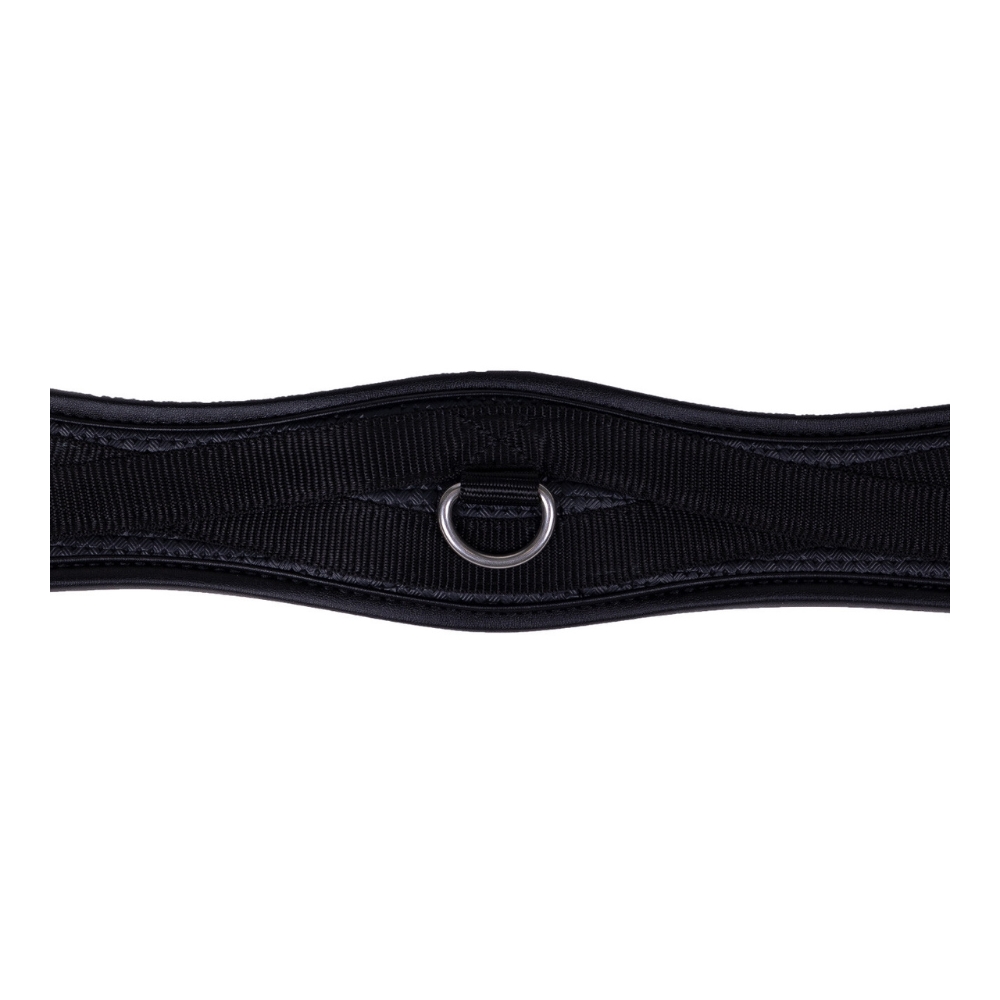 De singel is uitgerust met een praktische ring, waardoor het eenvoudig is om hulpteugels tijdens de training te bevestigen. Elastiek aan beide uiteinden en rolgespen zorgen voor een gemakkelijke en gelijkmatige aanspanning, zodat het zadel stabiel en correct ligt.
