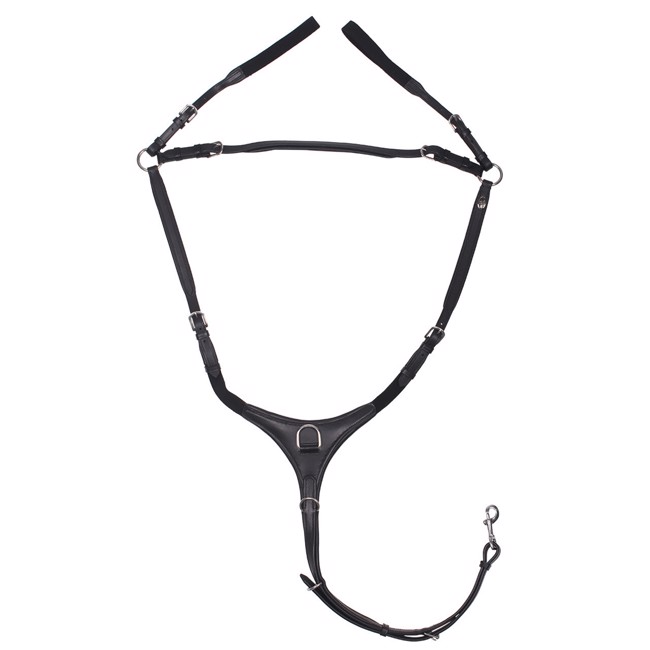 Heerlijk borsttuig van QHP, dat voorkomt dat het zadel naar achteren glijdt tijdens het springen.
