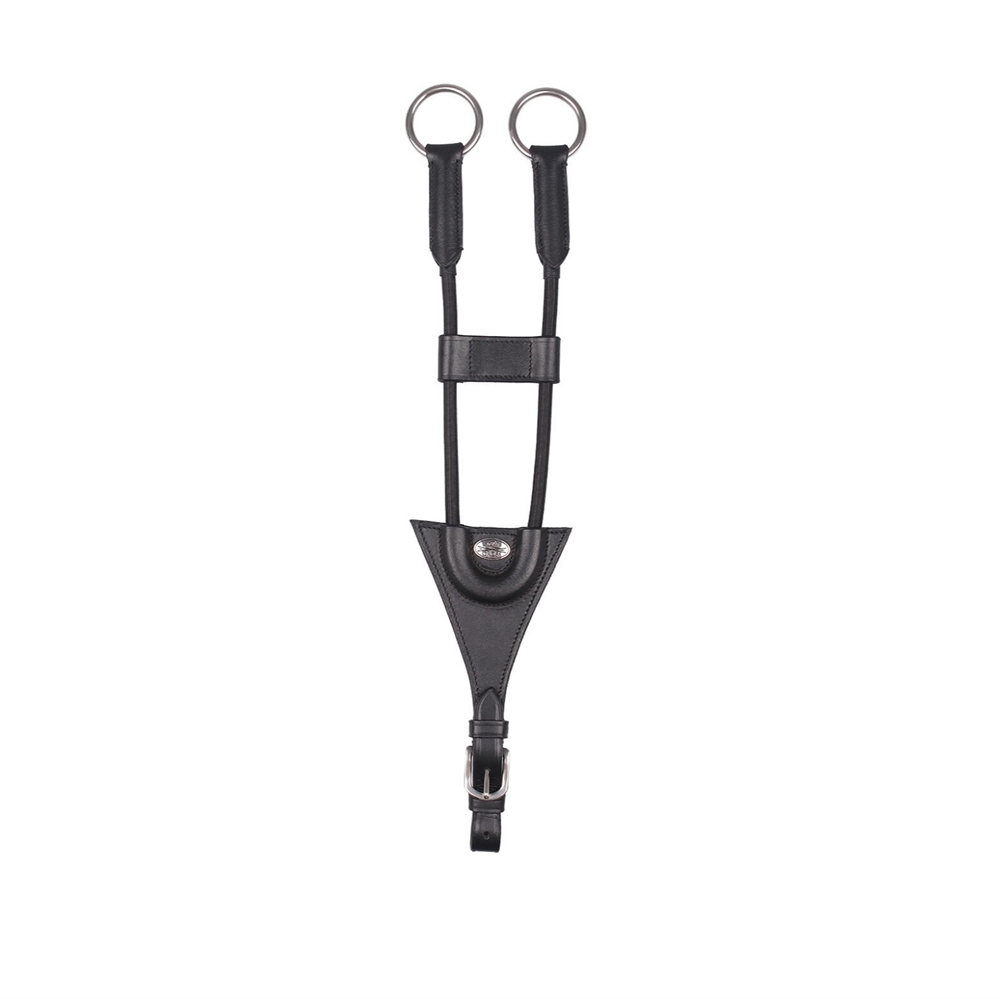 Luxueuze elastische martingaal riemen gemaakt van robuust rond elastiek en leer. De afstand tussen de ringen kan eenvoudig worden aangepast.
