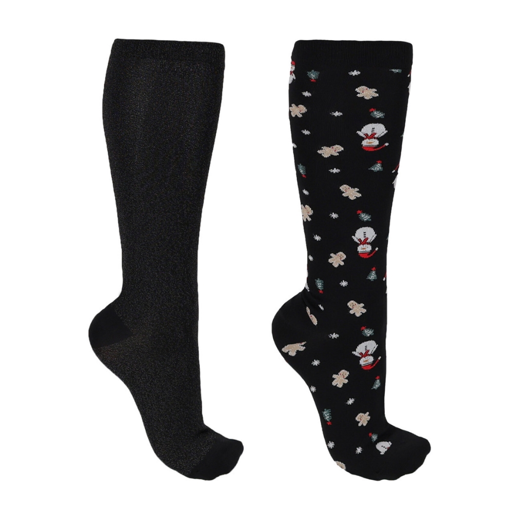 De set bevat twee paar kniekousen met schattige en grappige kerstpatronen, die een feestelijke twist aan je outfit geven – perfect voor zowel kerstwedstrijden als dagelijks gebruik.