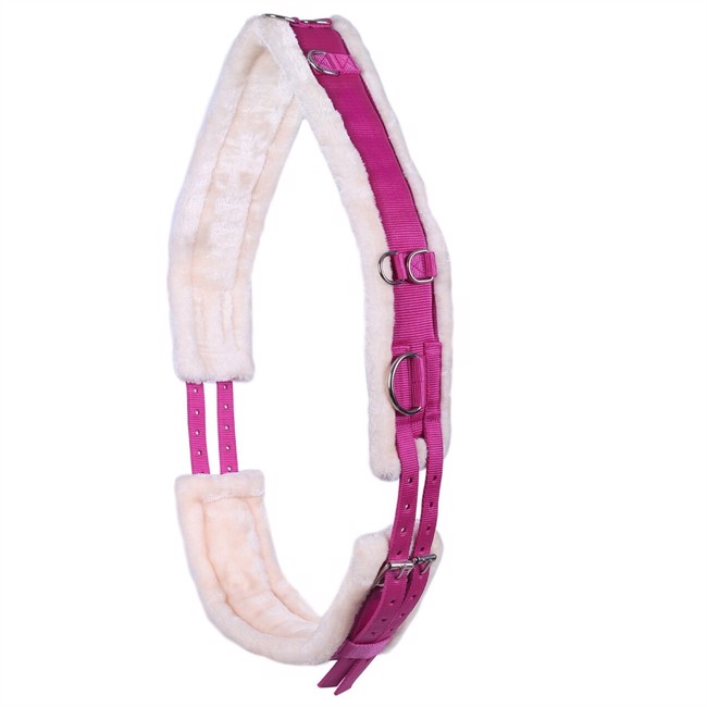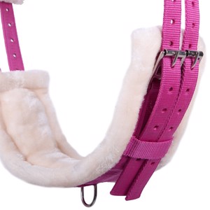 QHP longeersingel Ontario is een longeersingel met zacht fakefur en is verstelbaar aan beide zijden, en heeft ringen voor het gebruik van hulpteugels.