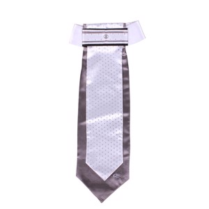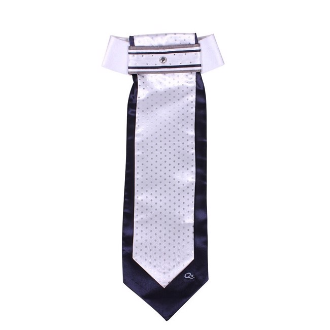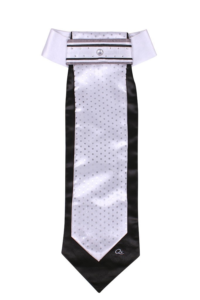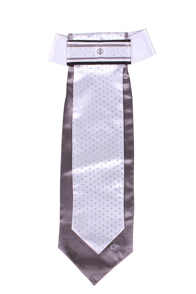 Mooie 2-kleurige plastron in satijn met zilverkleurige stippen en decoratie van meerdere kleine en één grote strass-steen.