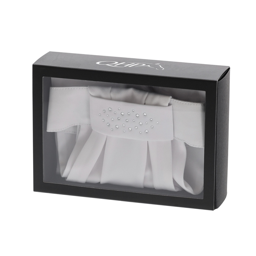 Geef je wedstrijdoutfit een exclusieve touch met QHP Plastron Zizah. Deze prachtige plastron-stropdas is versierd met kleine strass-steentjes en heeft de kenmerkende geborduurde 'Q' onderaan, wat een verfijnde en stijlvolle uitstraling geeft. De plastron wordt eenvoudig bevestigd met klittenbandsluiting en zit veilig tijdens het rijden.
