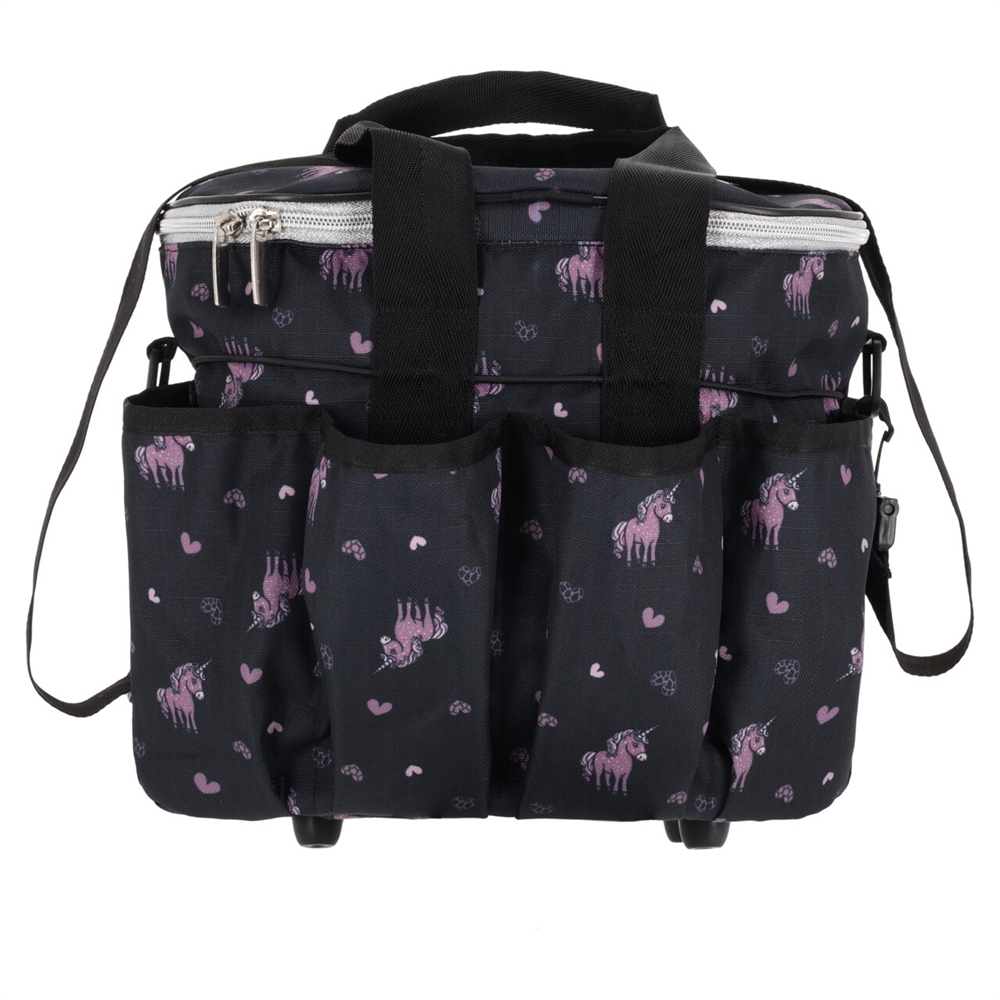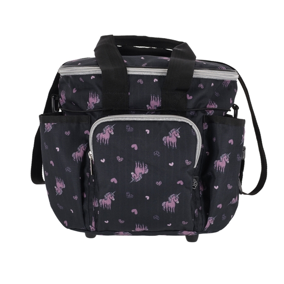 De tas is uitgerust met meerdere praktische vakken en sluit veilig met een rits aan de bovenkant. Binnenin vind je een ritsvak, een transparant kaartvak en twee houders voor pennen of kleine gereedschappen. Aan de buitenkant heeft de tas verschillende vakken die perfect passen voor bijvoorbeeld waterflessen, sprays of borstels – evenals een ritsvak aan de voorkant voor kleine spullen. Hij is gemakkelijk mee te nemen dankzij zowel handvatten als een verstelbare schouderriem.