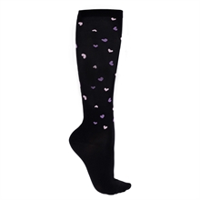 Deze verpakking bevat twee paar sokken met een charmante hartjesprint en glitterdetails, die een extra vleugje flair aan je outfit toevoegen. De sokken zijn gemaakt van een zacht en elastisch materiaal, dat de hele dag door een comfortabele pasvorm garandeert – zowel in als buiten rijlaarzen.