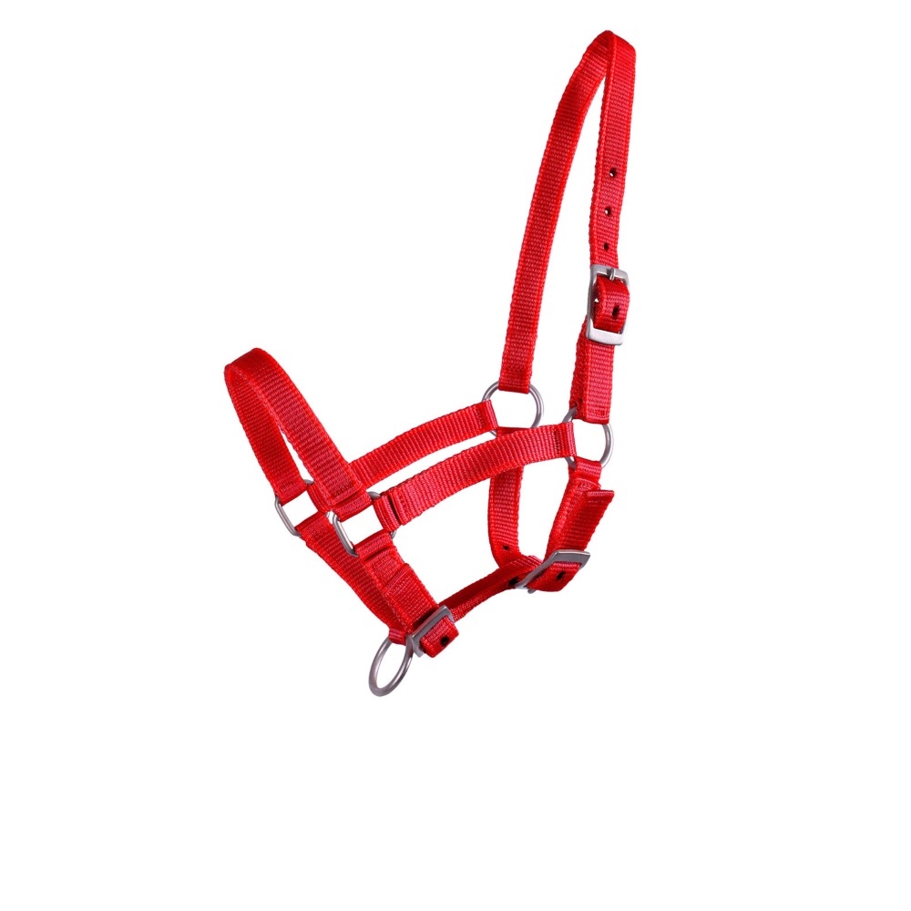 Sterk nylon veulenhalster die verstelbaar is bij de nek, kaak en neus.