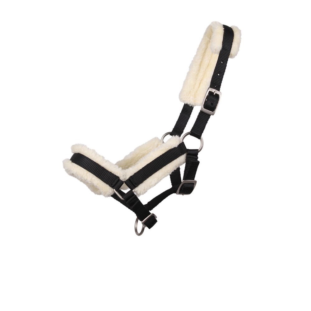 Dit veulenhalster is ideaal voor jonge paarden en veulens. Het is ontworpen met synthetisch lamswol voor extra comfort en bescherming tegen schuren. Het halster is verstelbaar bij nek, neus en kaak, wat zorgt voor een goede pasvorm tijdens de groei van het veulen. Het heeft een ring voor een leidraad, zodat het ook kan worden gebruikt voor training en buitengebruik.