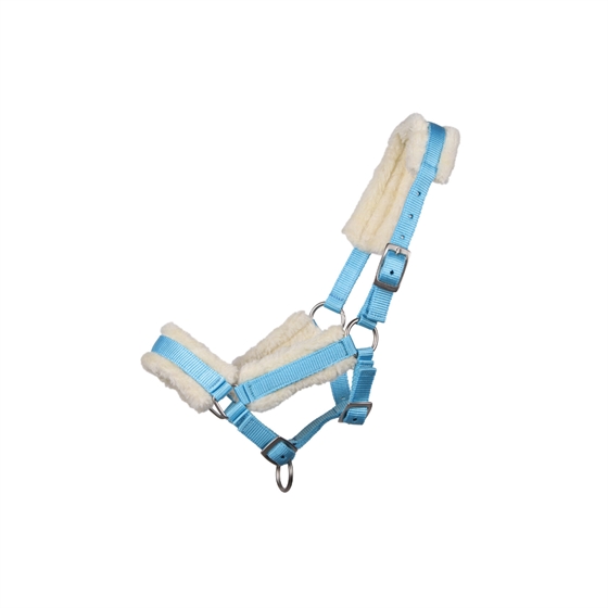 Dit veulenhalster is ideaal voor jonge paarden en veulens. Het is ontworpen met synthetisch lamswol voor extra comfort en bescherming tegen schuren. Het halster is verstelbaar bij nek, neus en kaak, wat zorgt voor een goede pasvorm tijdens de groei van het veulen. Het heeft een ring voor een leidraad, zodat het ook kan worden gebruikt voor training en buitengebruik.