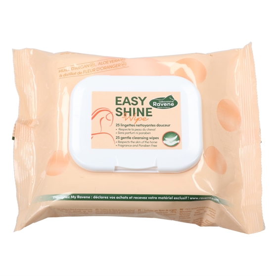 Ravene Easy Shine Cleansing Wipes zijn groot van formaat en perfect geschikt voor paarden en respecteren hun gevoelige huid. De doekjes zijn biologisch afbreekbaar en gecoat met een alcoholvrije, parabenenvrije en parfumvrije oplossing.