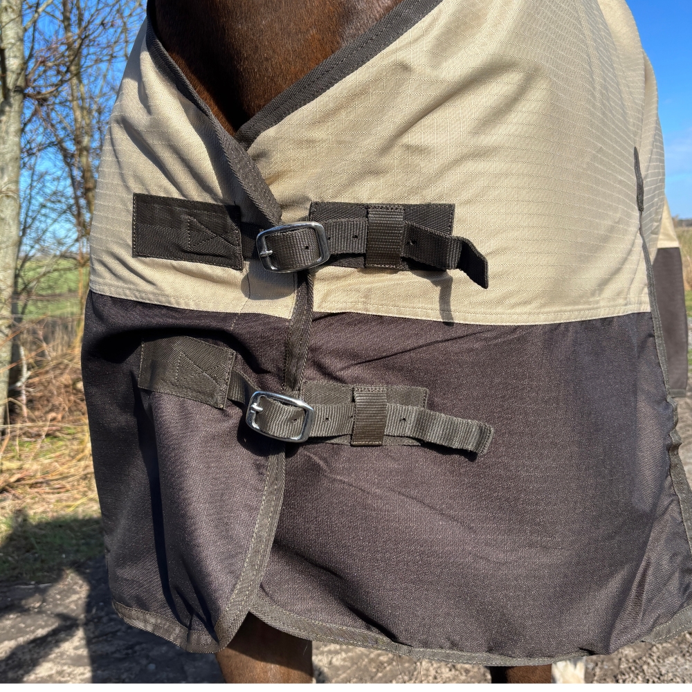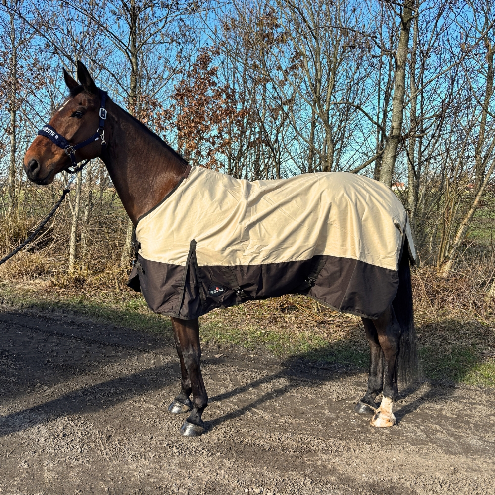 RK regendeken met fleecevoering Beige/Brown is een betrouwbare en praktische keuze voor natte dagen, wanneer je paard lichte, comfortabele en effectieve bescherming tegen het weer nodig heeft.