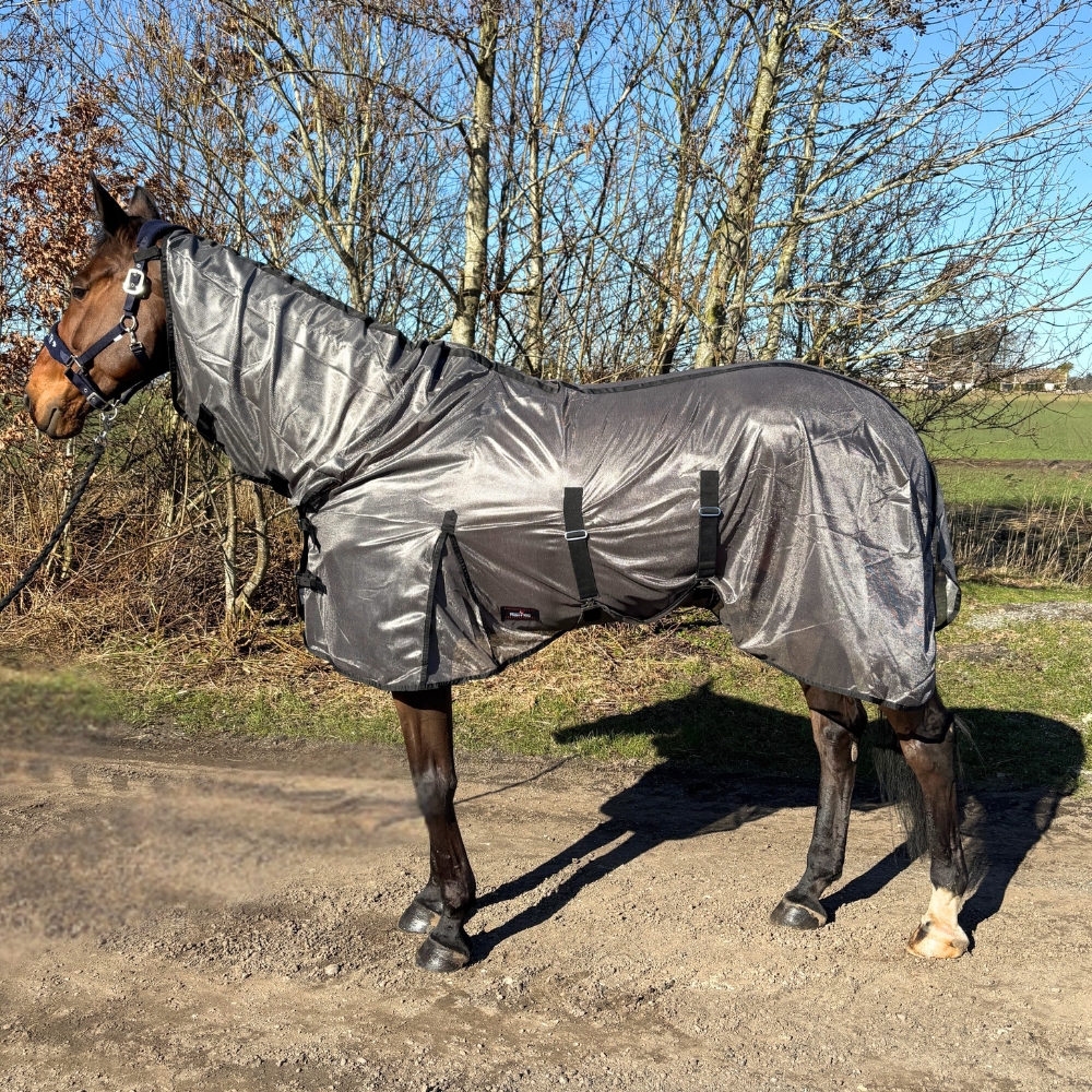 RK vliegendeken met buikflap is een praktische en comfortabele keuze die optimale bescherming tegen insecten biedt, terwijl het paard zich vrij en moeiteloos kan bewegen.