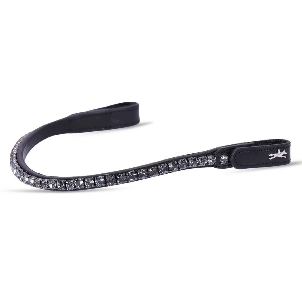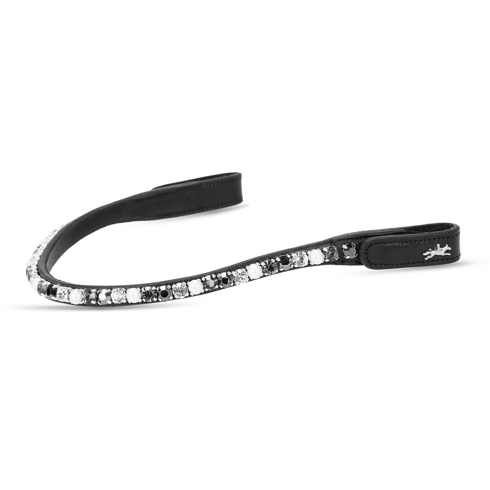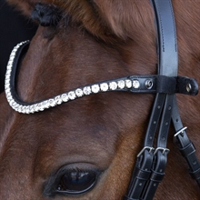 Prachtige frontriem met extra grote kristallen. Een smalle frontriem, die eenvoudig en gemakkelijk kan worden verwisseld dankzij de drukknoop en extra klittenbandsluiting.