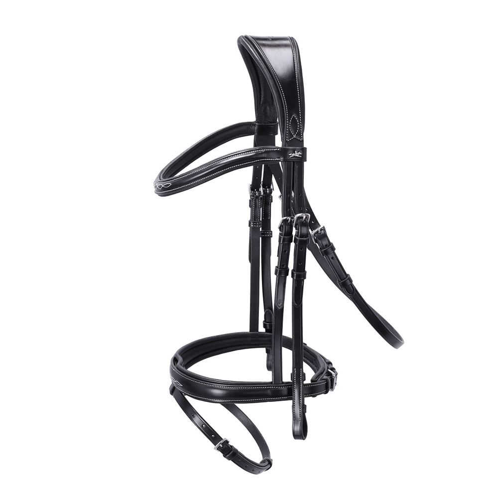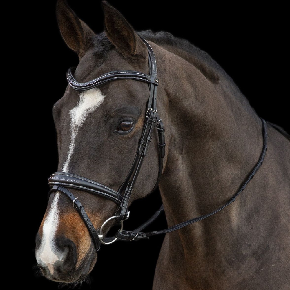 Het nieuwe Classic Line Monza F hoofdstel impressioneert met zijn sportieve, elegante borduursel gecombineerd met het nieuwe, anatomische kopstuk. Het hoofdstel heeft een gevormde Engelse gecombineerde neusriem en een afneembare kaakriem met verborgen lus. Dit betekent dat er geen storende lus zichtbaar is op de neusriem.