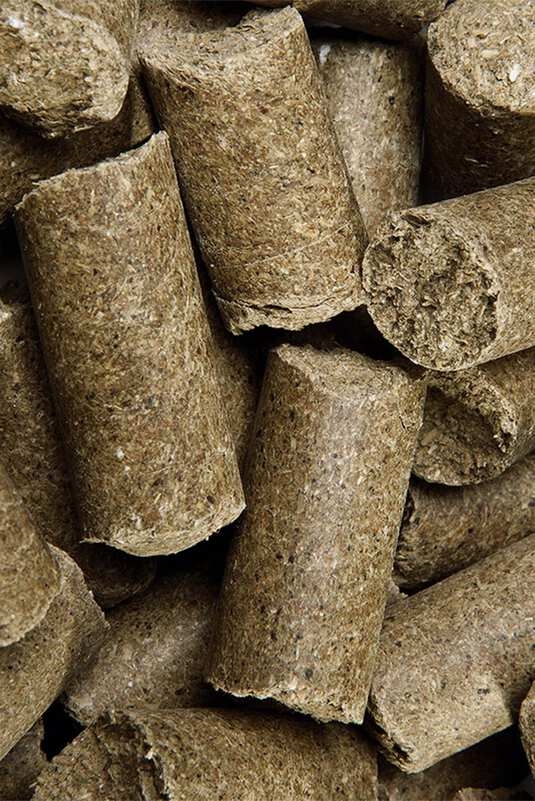 Samenstelling: Tarwevezels, havervezels, gerst, maïs, calciumcarbonaat, rietsuikermelasse, bietenpoeder, 0.