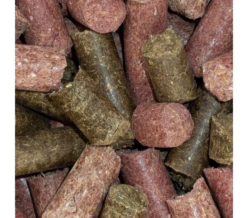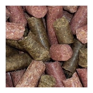 Samenstelling: Tarwevezels, havervezels, gerst, maïs, calciumcarbonaat, rietsuikermelasse, rode bietenpoeder, 0.