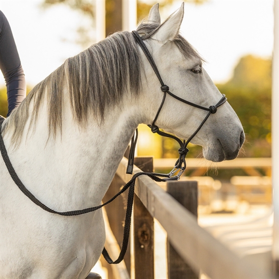 Dit Leather Rope Halter van QHP combineert de functionaliteit van een klassiek touwhalster met een exclusieve en luxueuze leren uitstraling. Het is perfect voor zowel grondwerk als bitloos rijden, waar precieze communicatie en lichtheid centraal staan.