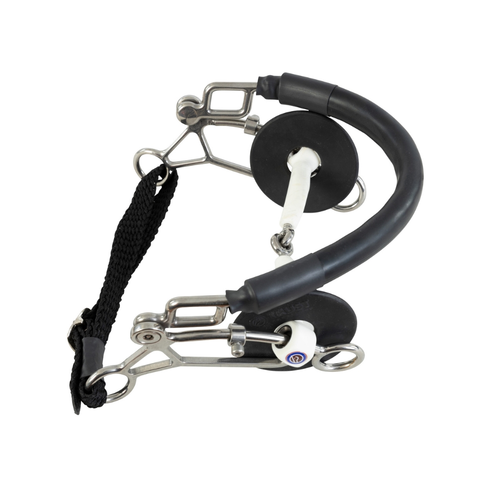Dit bit is een combinatie van hackamore en bit, wat zorgt voor een meer geavanceerde en effectieve inwerking. De combinatie werkt zowel met druk op de neusbrug, de kin en in de mond, waardoor de ruiter meerdere inwerkingspunten heeft en dus meer controle.