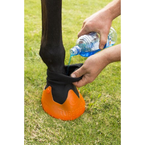 De unieke ademende sok laat luchtcirculatie toe, zodat er geen warmte en vochtigheid in de schoen ontstaat – de hoef behoudt zijn natuurlijke kracht en gezondheid. De rubber beklede basis voorkomt dat vocht van buitenaf binnendringt en zorgt er tegelijkertijd voor dat vloeistof en medicatie blijven waar ze moeten zijn.