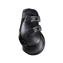 Extra lange achterbeenbeschermer met dubbele anatomische schaal van schokbestendig polyurethaan, ontworpen om maximale prestaties van de achterbenen te bereiken en extra bescherming van de koot van de achterbenen.
