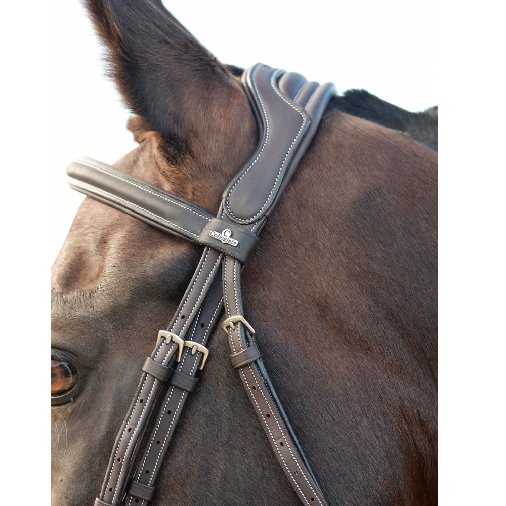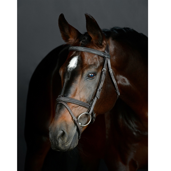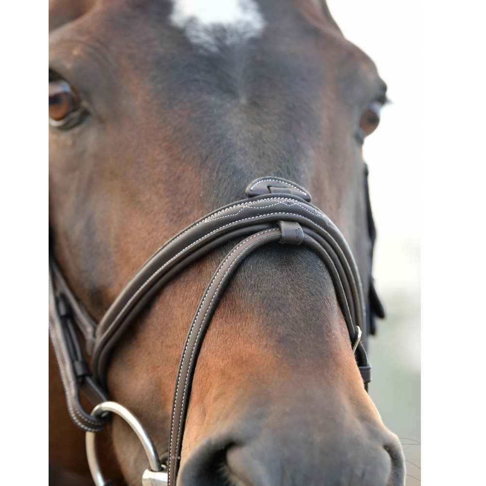 Anatomisch kopstuk met ongelooflijk zachte voering en breder gevormd tussen de oren van het paard om de druk gelijkmatig en comfortabeler te verdelen. Het is mogelijk om de neusriem te verwijderen.