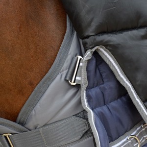 Hier is de mogelijkheid om het paard meer of minder vulling onder het deken te geven, afhankelijk van wind en weer.