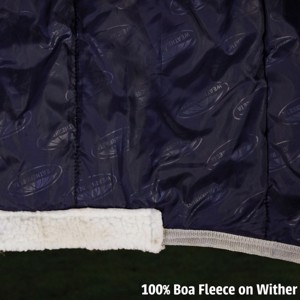 Het deken heeft 50 gram polyfill en 210T glad polyester voering. Verstelbare kruissingels en verstelbare en afneembare bilkoorden evenals staartflap.